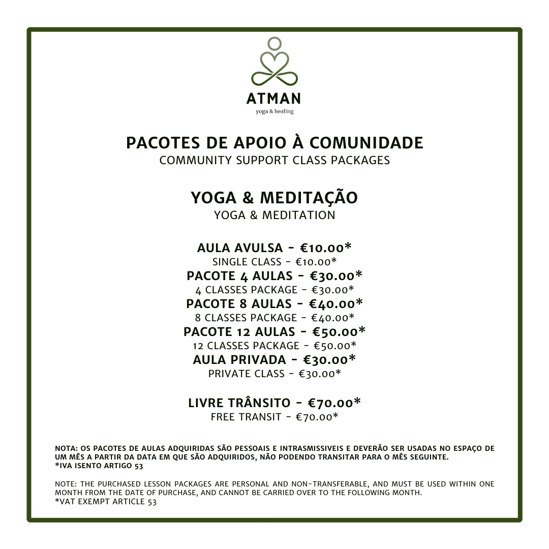 Obs. Se passas por dificuldades económicas, contacta-nos que encontraremos uma forma.