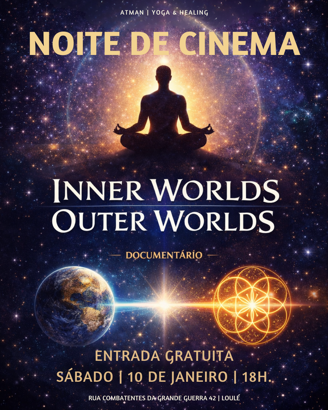 O ambiente, a forma como me senti acolhida, a forma como guiaste a meditação e o som de cura do Bruno foi a junção perfeita para uma sessão incrível de limpeza e energização de corpo e espírito. Saí desta sessão leve e serena, mas com uma força incrível para avançar com confiança, consciência e amor À,