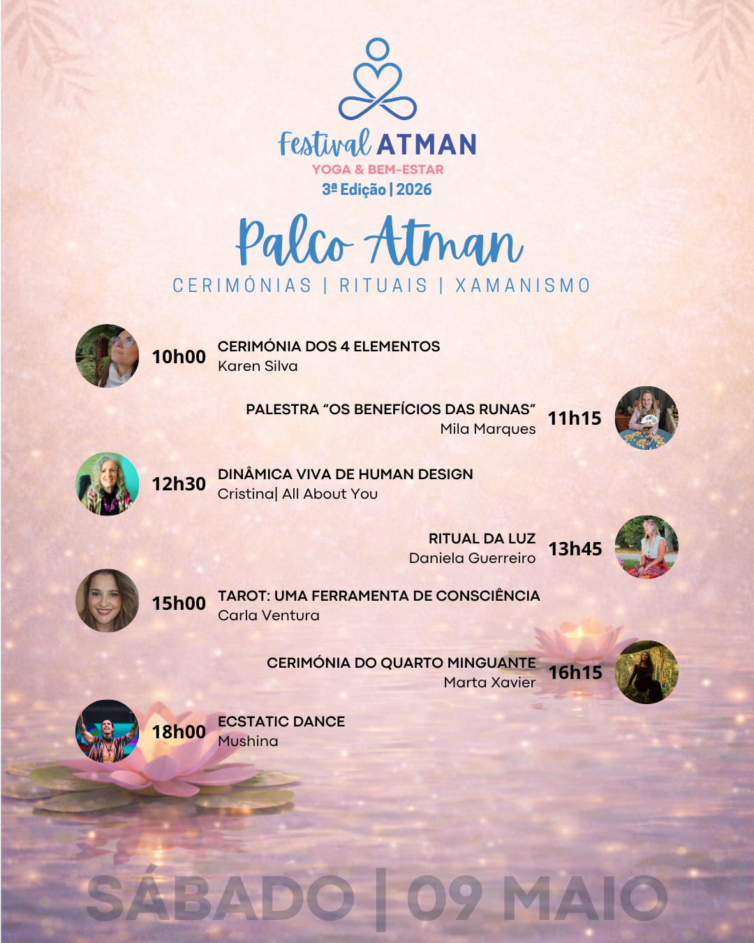 O ambiente, a forma como me senti acolhida, a forma como guiaste a meditação e o som de cura do Bruno foi a junção perfeita para uma sessão incrível de limpeza e energização de corpo e espírito. Saí desta sessão leve e serena, mas com uma força incrível para avançar com confiança, consciência e amor À,